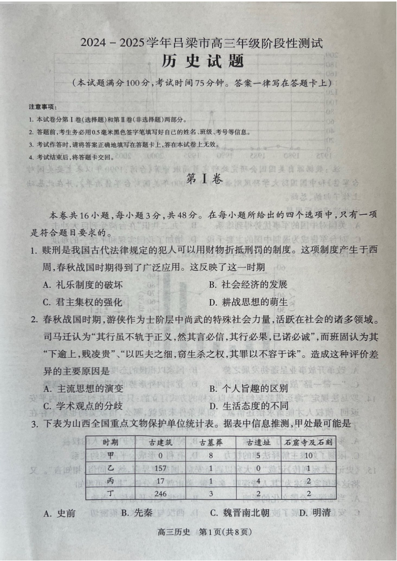 山西省吕梁市2024-2025学年高三年级阶段性测试 历史