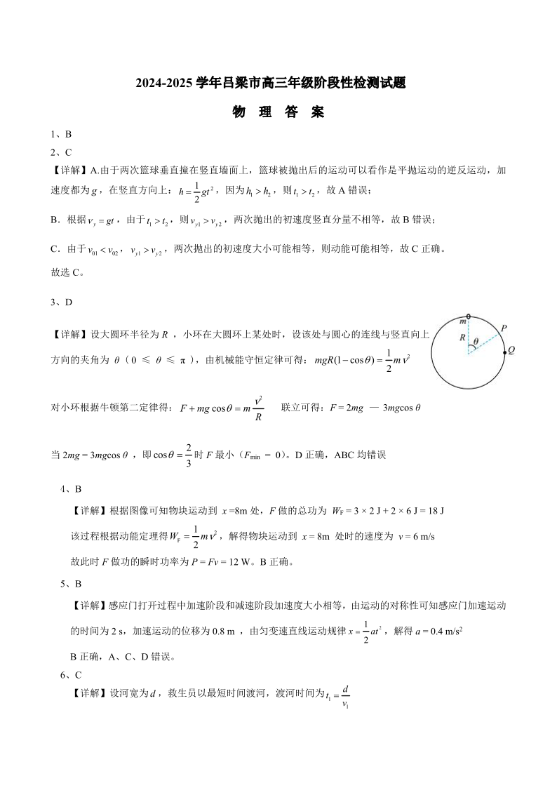 山西省吕梁市2024-2025学年高三年级阶段性测试 物理答案