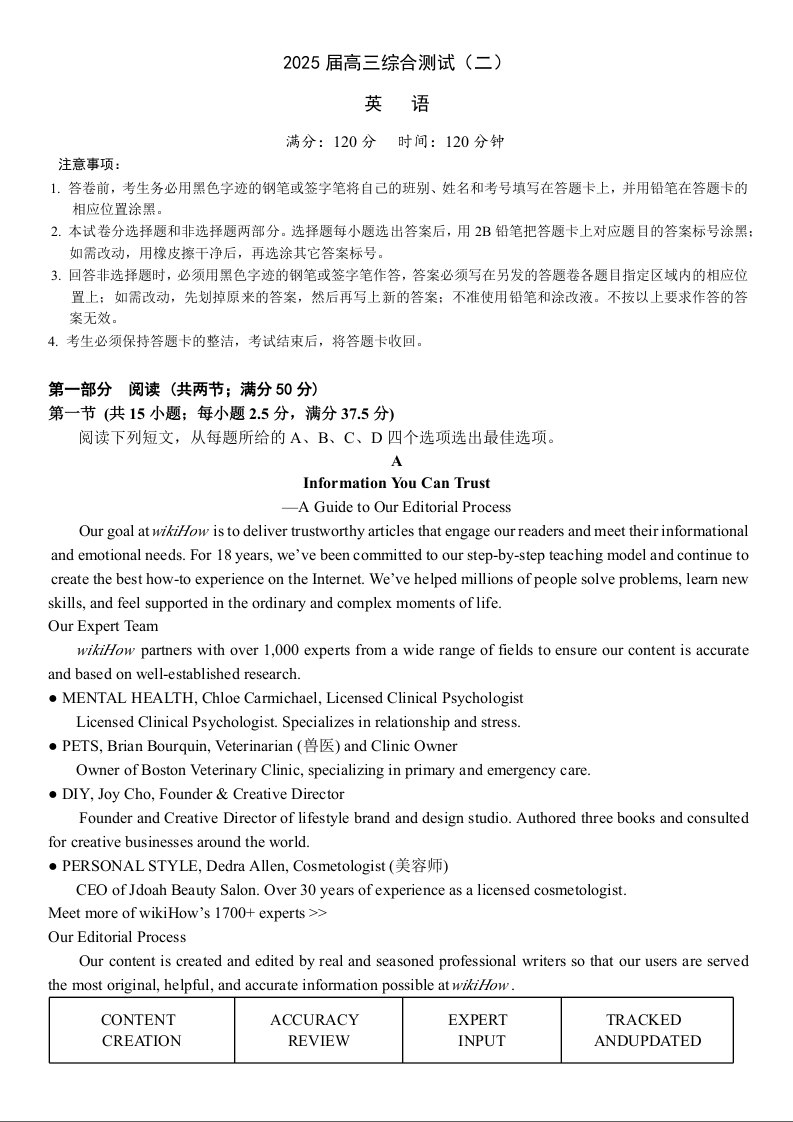 广东省华南师范大学附属中学2024-2025学年高三上学期11月综合测试(二)英语 Word版含答案
