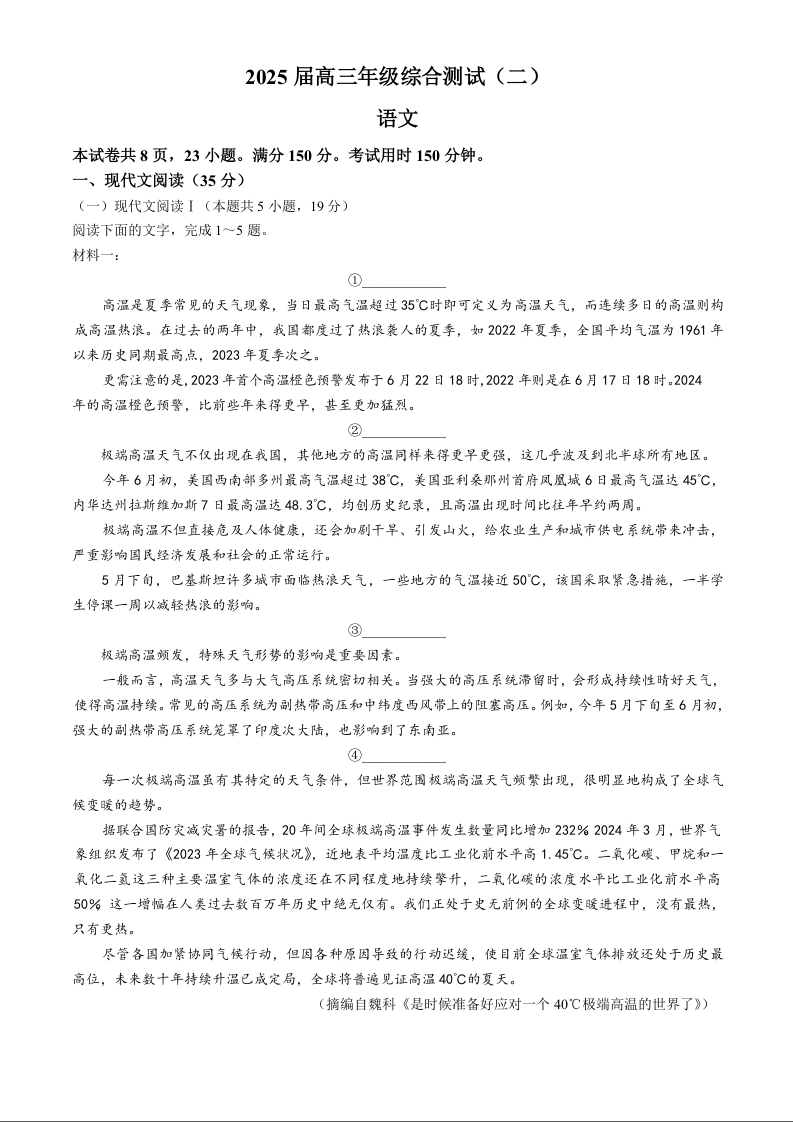 广东省华南师范大学附属中学2024-2025学年高三上学期11月综合测试(二)语文试题(含答案)
