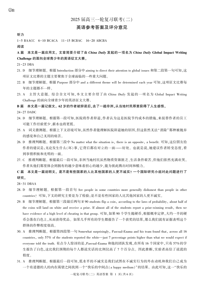 百师联盟2025届高三一轮复习联考(二)(云贵川)英语答案