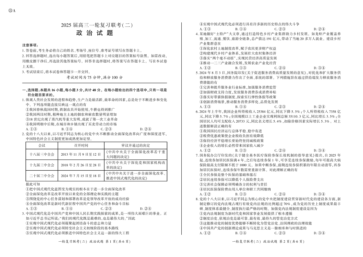 百师联盟2025届高三一轮复习联考(二)(云贵川)政治
