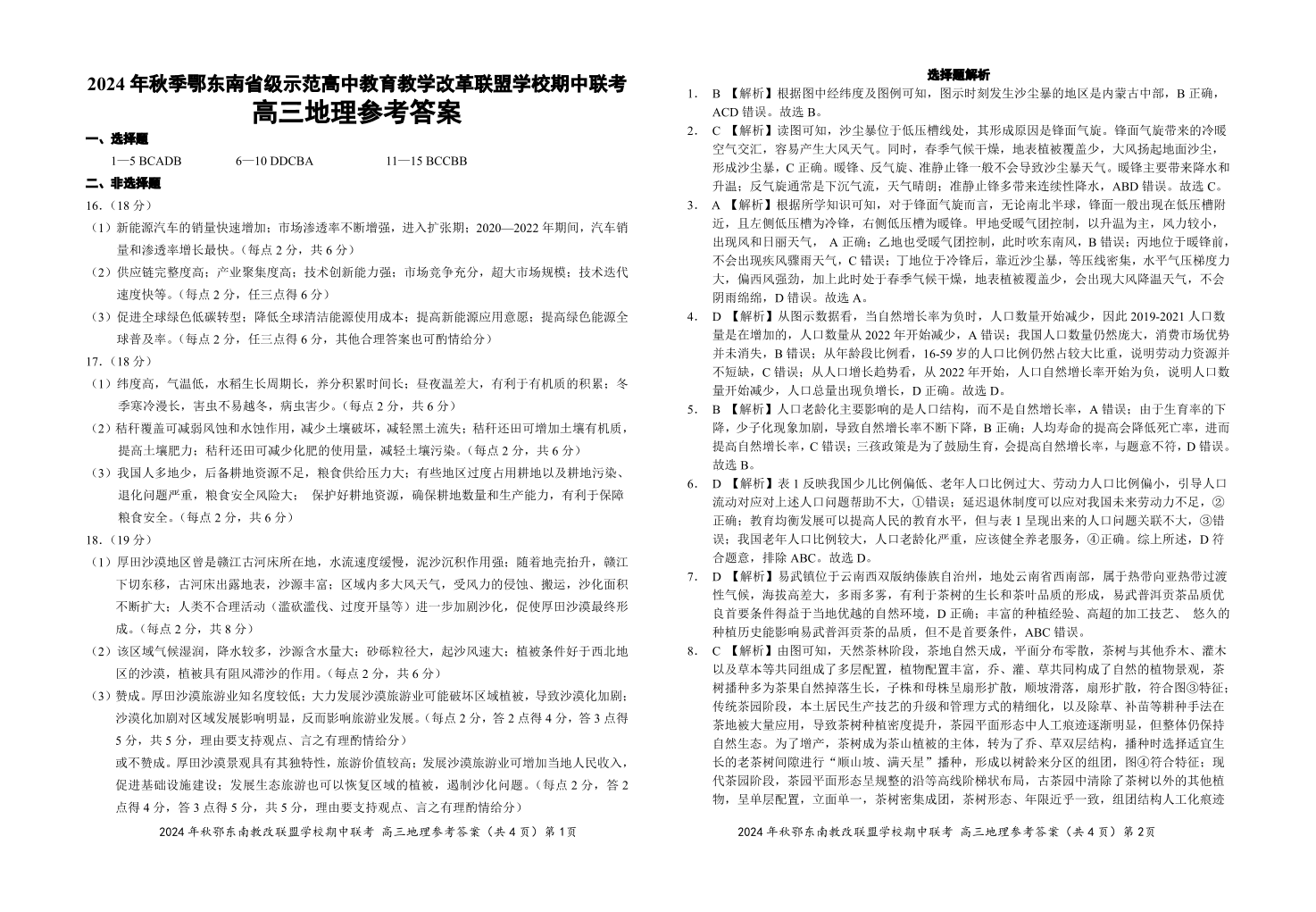 2025届湖北省鄂东南示范高中高三11月期中联考地理答案