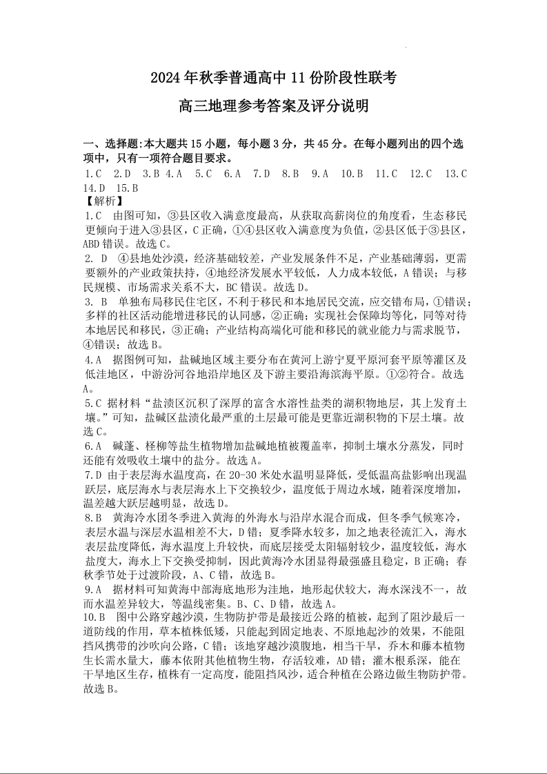 2025届湖北省鄂东协作体秋季普通高中11月份高三阶段性联考地理答案
