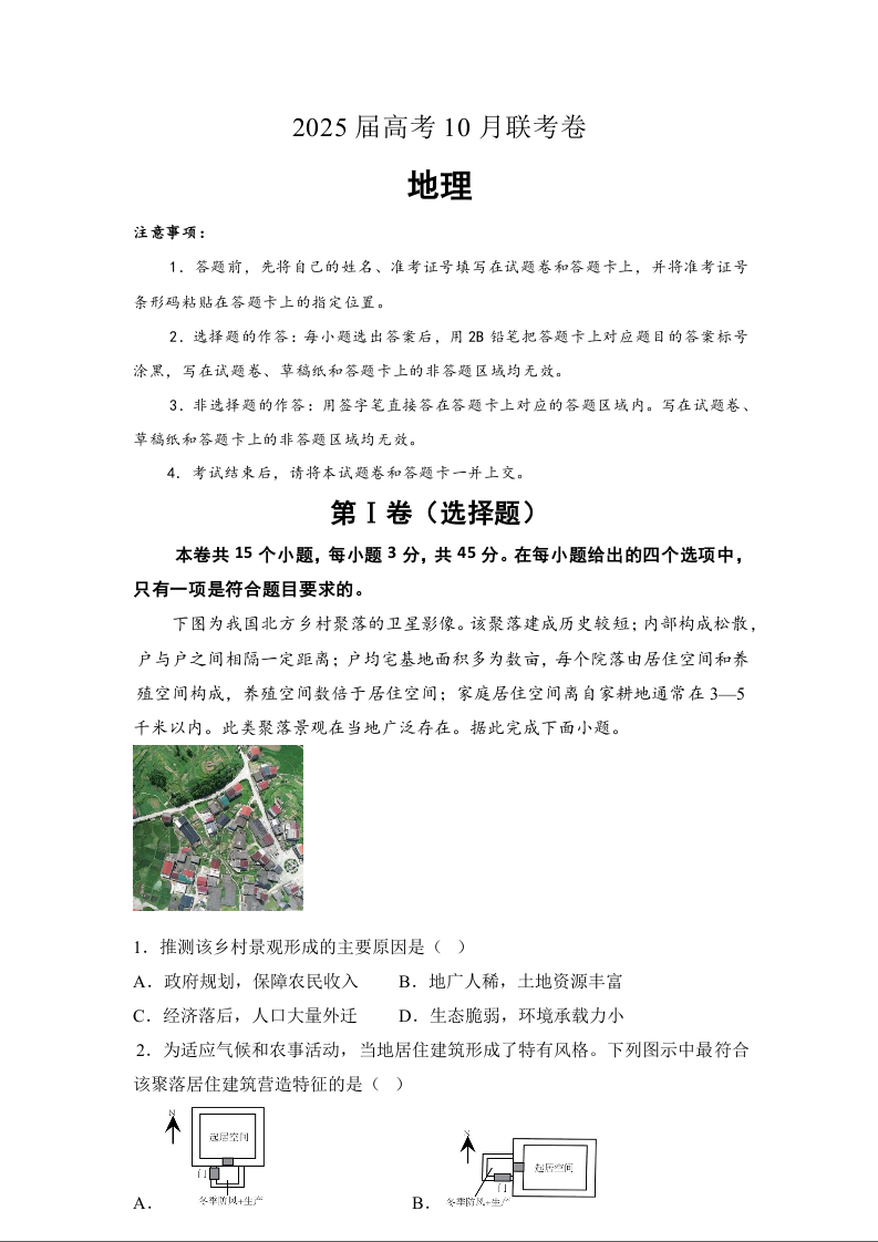 湖南省名校联考2024-2025学年高三上学期10月联考地理试题+答案