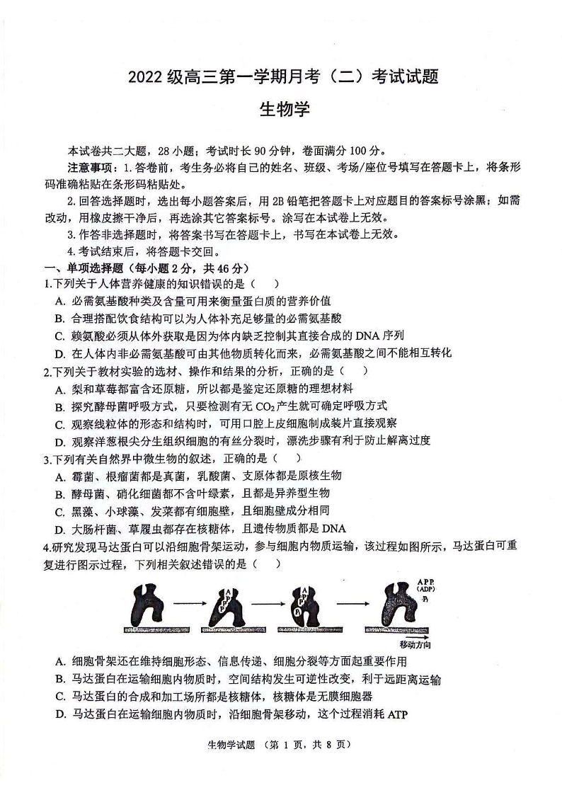 陕西省西安市2025届高三上学期11月联考一模(高新第一中学、安康市高新中学、宝鸡中学)生物试题