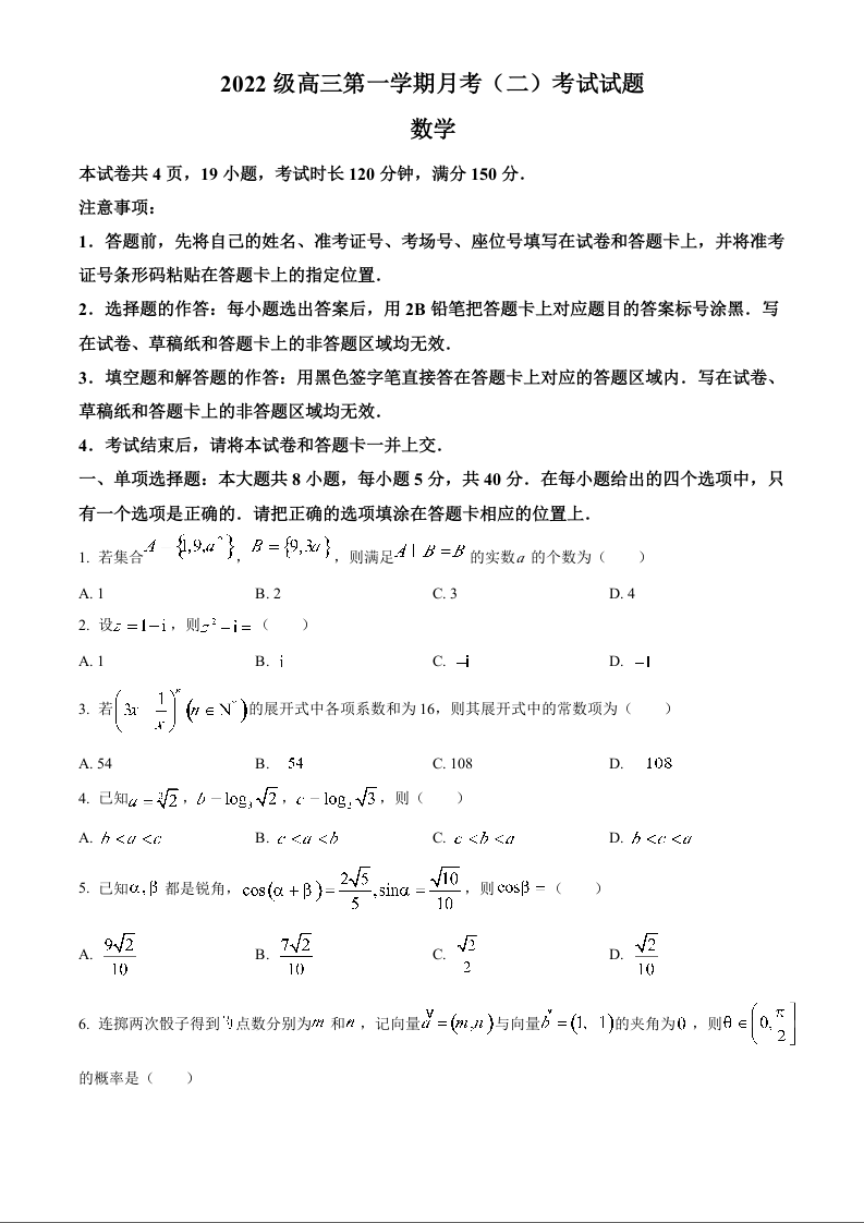 陕西省西安市2025届高三上学期11月联考一模(高新第一中学、安康市高新中学、宝鸡中学)数学