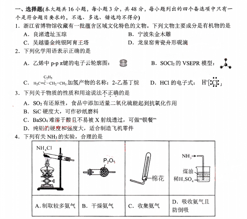 浙江省2025届高三杭州一模化学试题