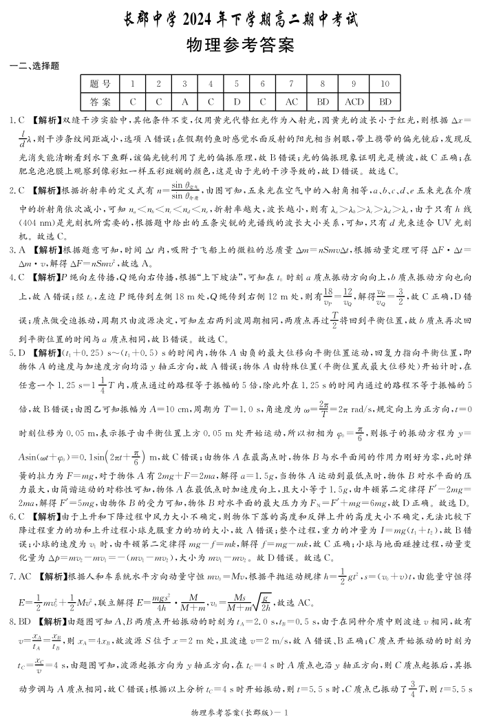 湖南省长沙市长郡中学2024-2025学年高二上学期11月期中考试物理答案
