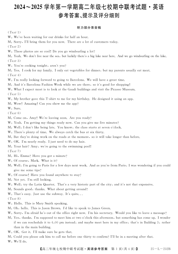 英语参考答案