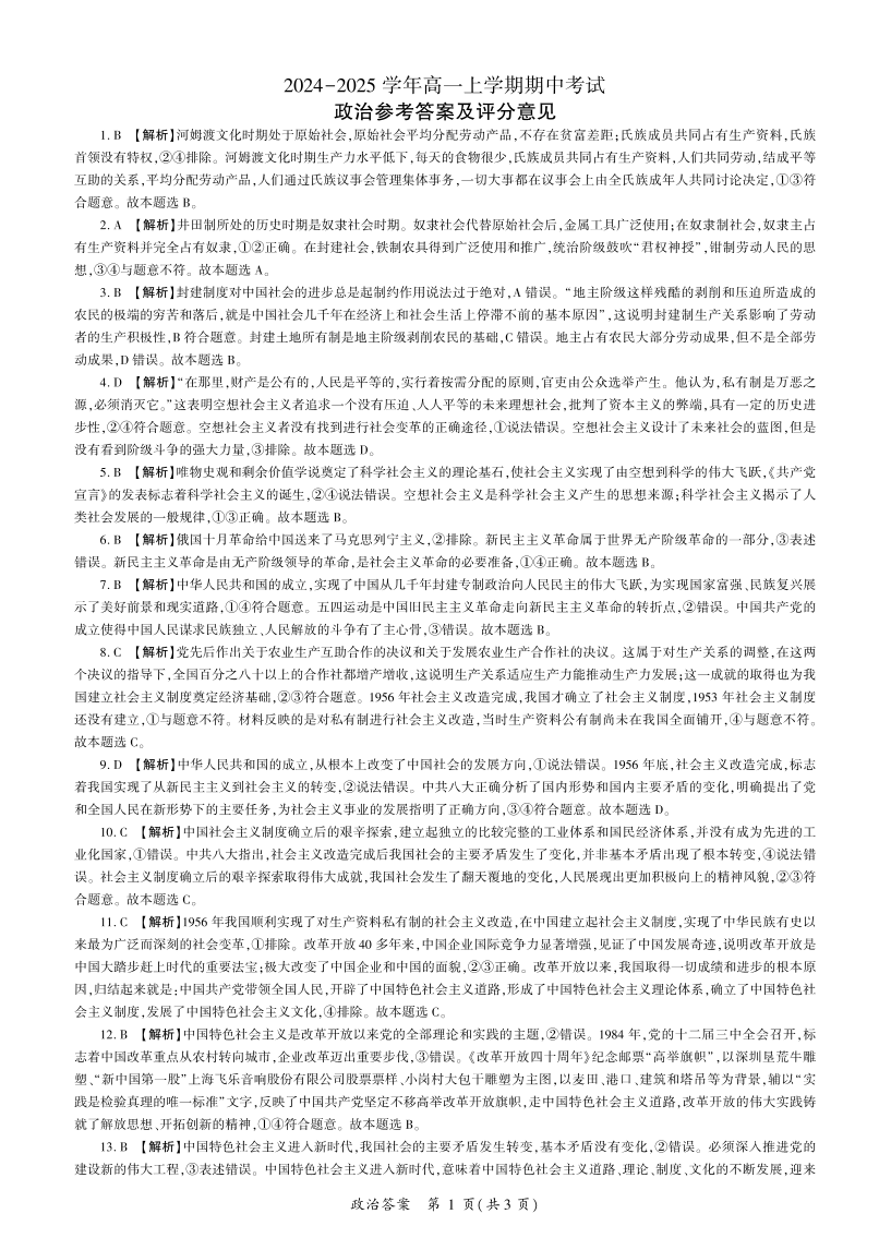 高一期中政治答案
