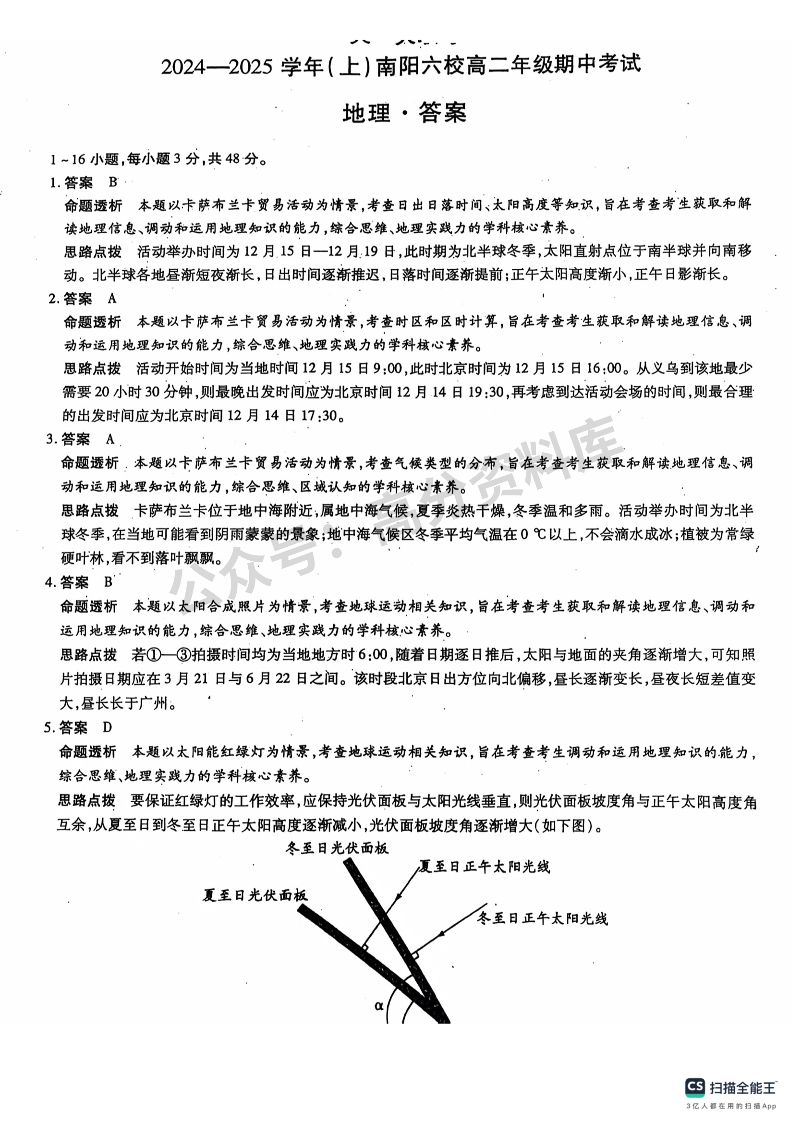 河南省南阳市六校2024-2025学年高二上学期10月期中地理答案