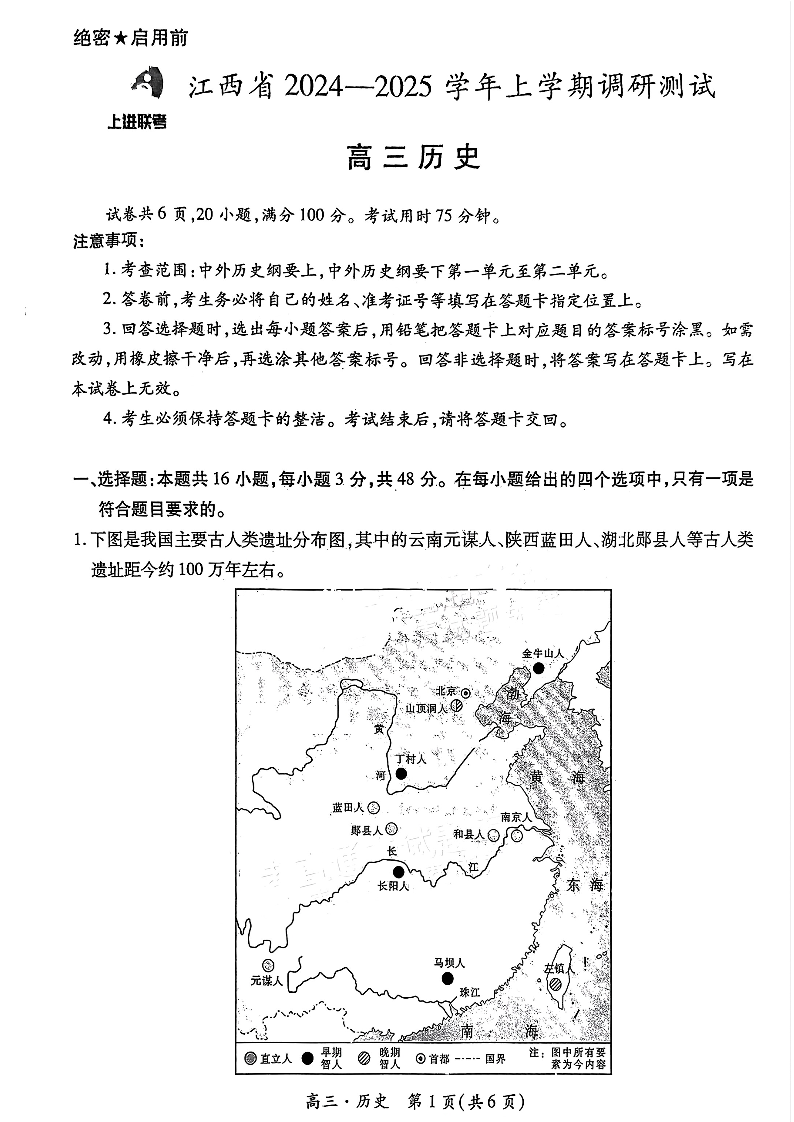 江西省上进联考2024-2025学年高三上学期11月期中调研测试 历史