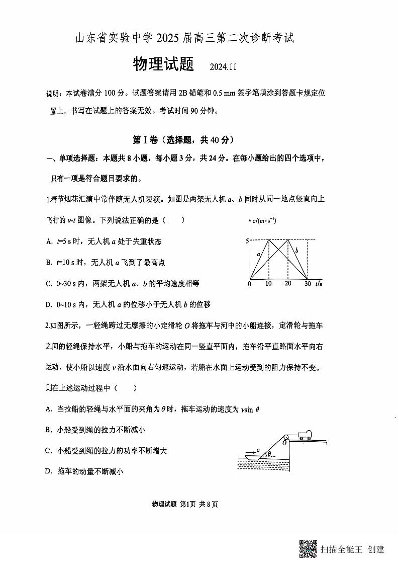 山东省实验中学2025届高三上学期11月期中考试 物理试题