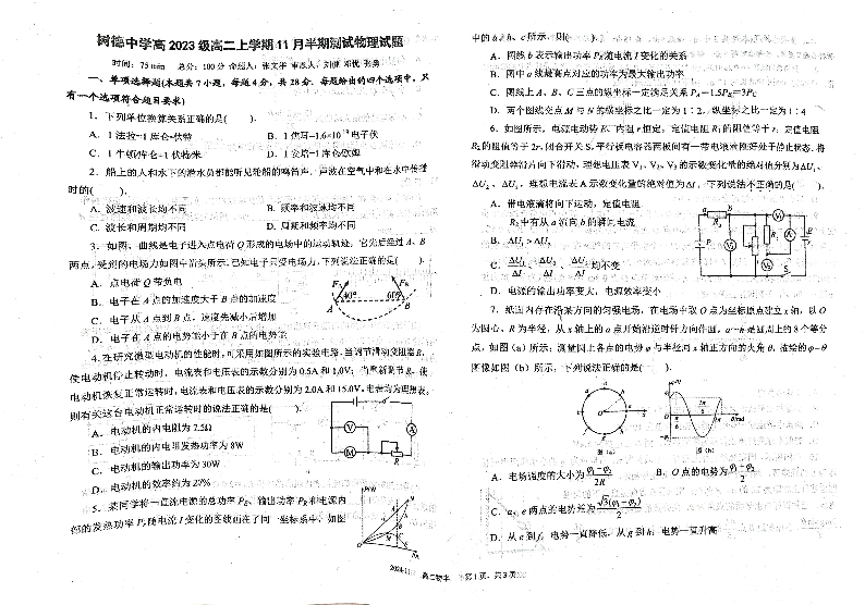 四川省成都市树德中学2024-2025学年高二上学期11月期中 高二物理