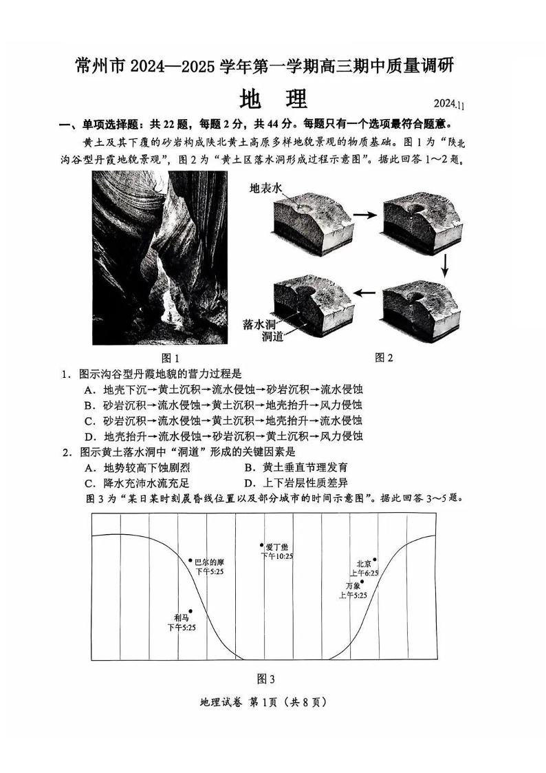 江苏省常州市2024-2025学年高三上学期期中考试 地理