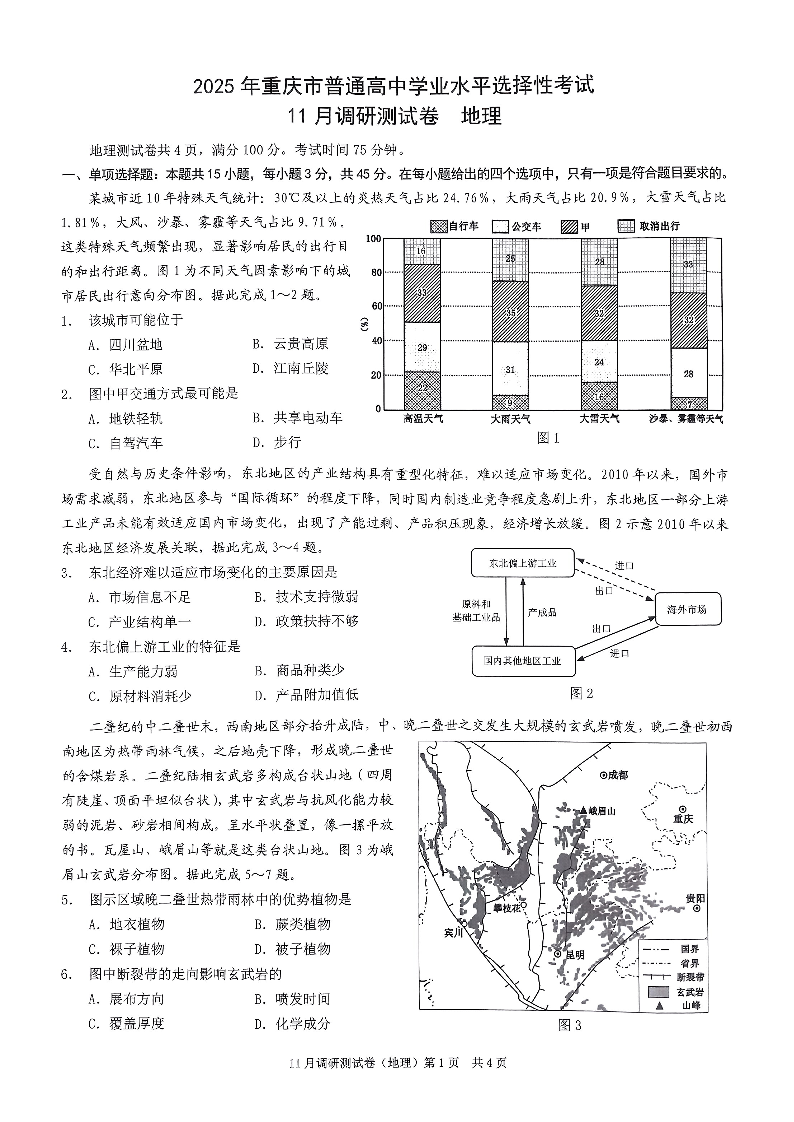 2025重庆康德半期考试 地理