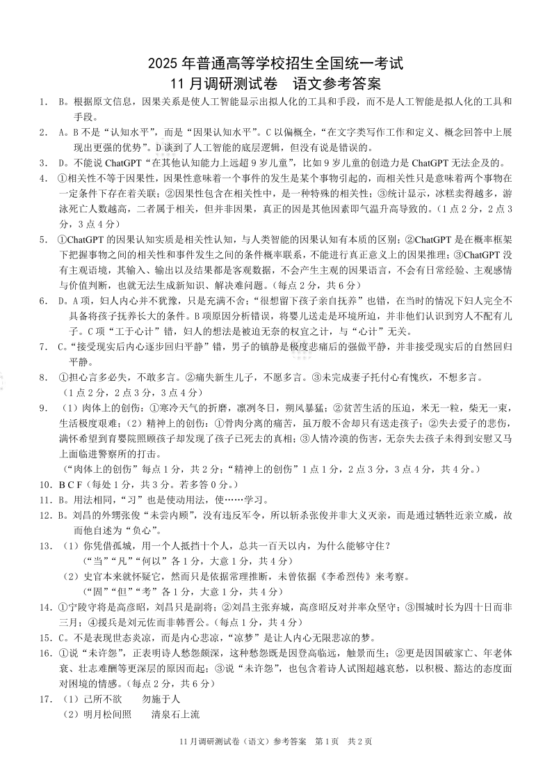 2025重庆康德半期考试 语文答案