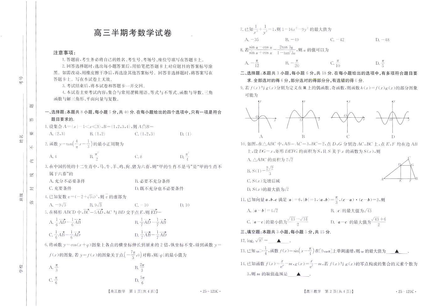 福建省部分达标高中2024-2025学年高三上学期期中考试 数学