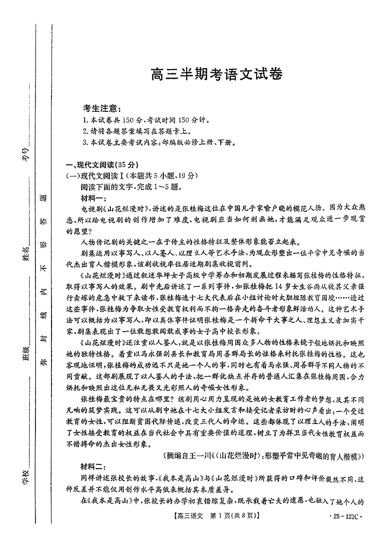 福建省部分达标高中2024-2025学年高三上学期期中考试 语文