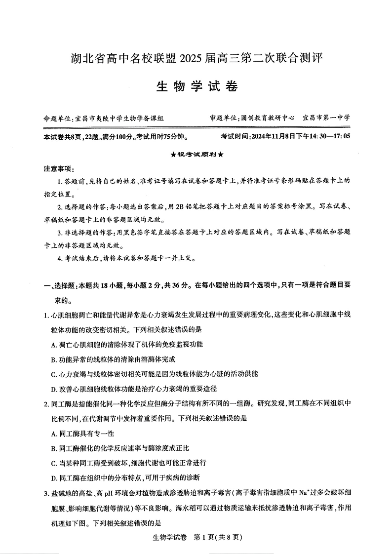 湖北省高中名校联盟2025届高三第二次联合测评 生物