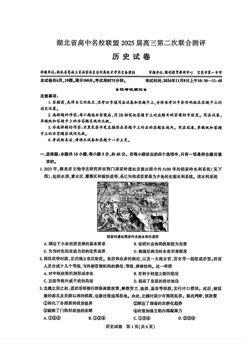 湖北省高中名校联盟2025届高三第二次联合测评 历史