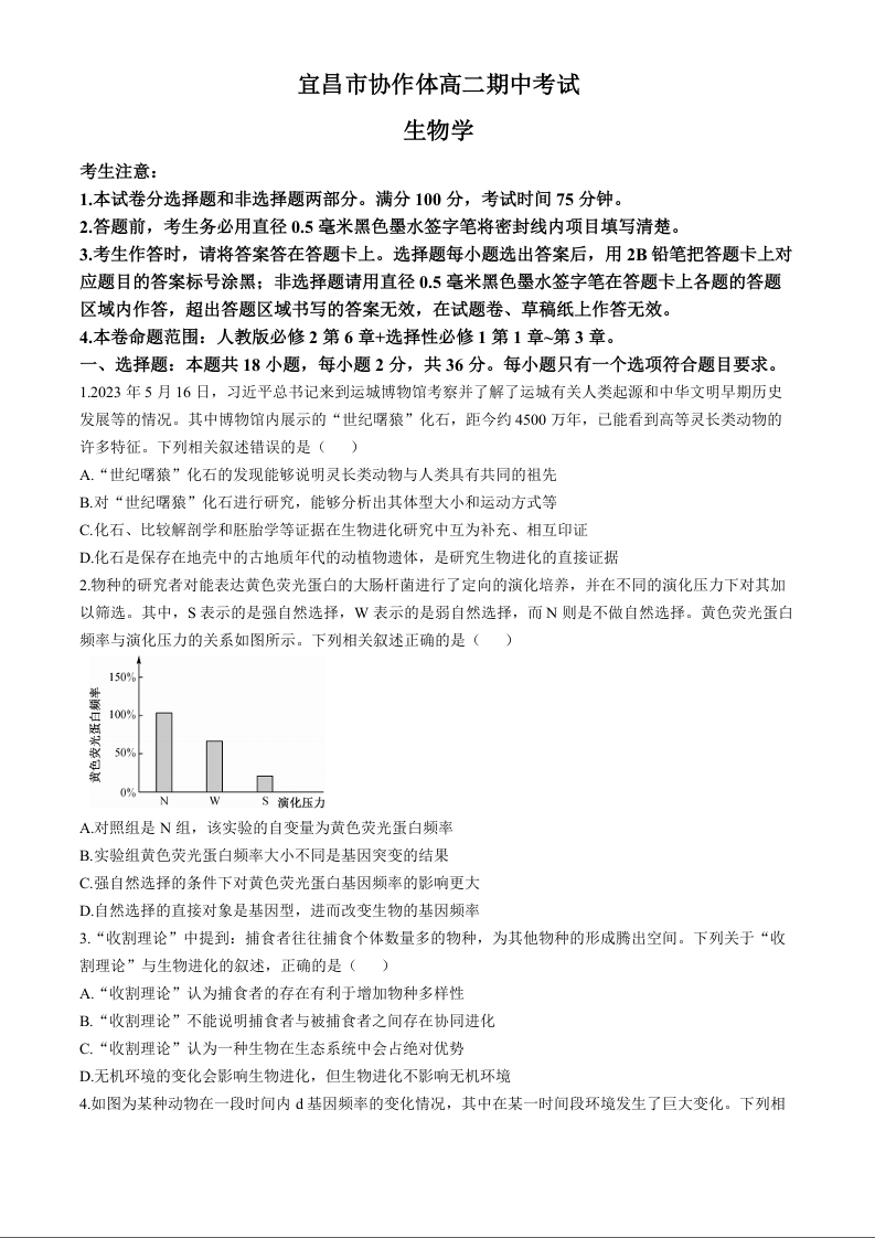 湖北省宜昌市协作体2024-2025学年高二上学期期中考试 生物