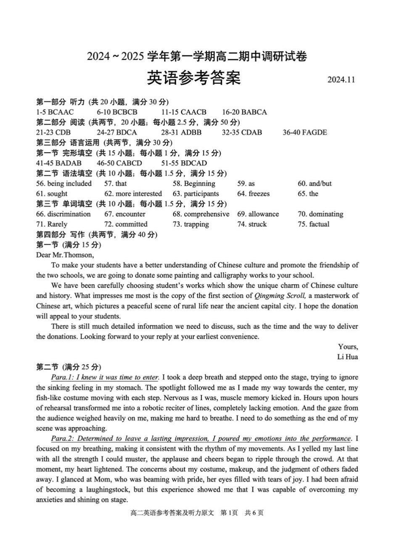 【英语答案】苏州市2024-2025学年高二上学期期中考试