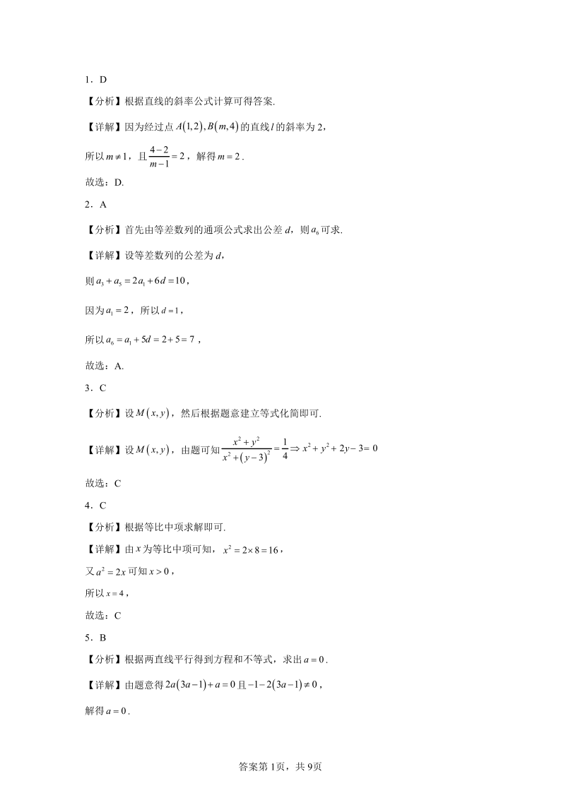【数学答案】苏州市2024-2025学年高二上学期期中考试