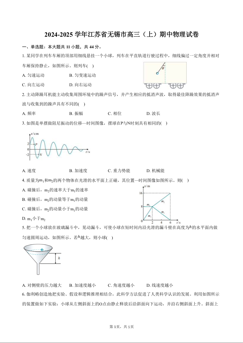 江苏省无锡市2025届高三11月期中教学质量调研测试 物理