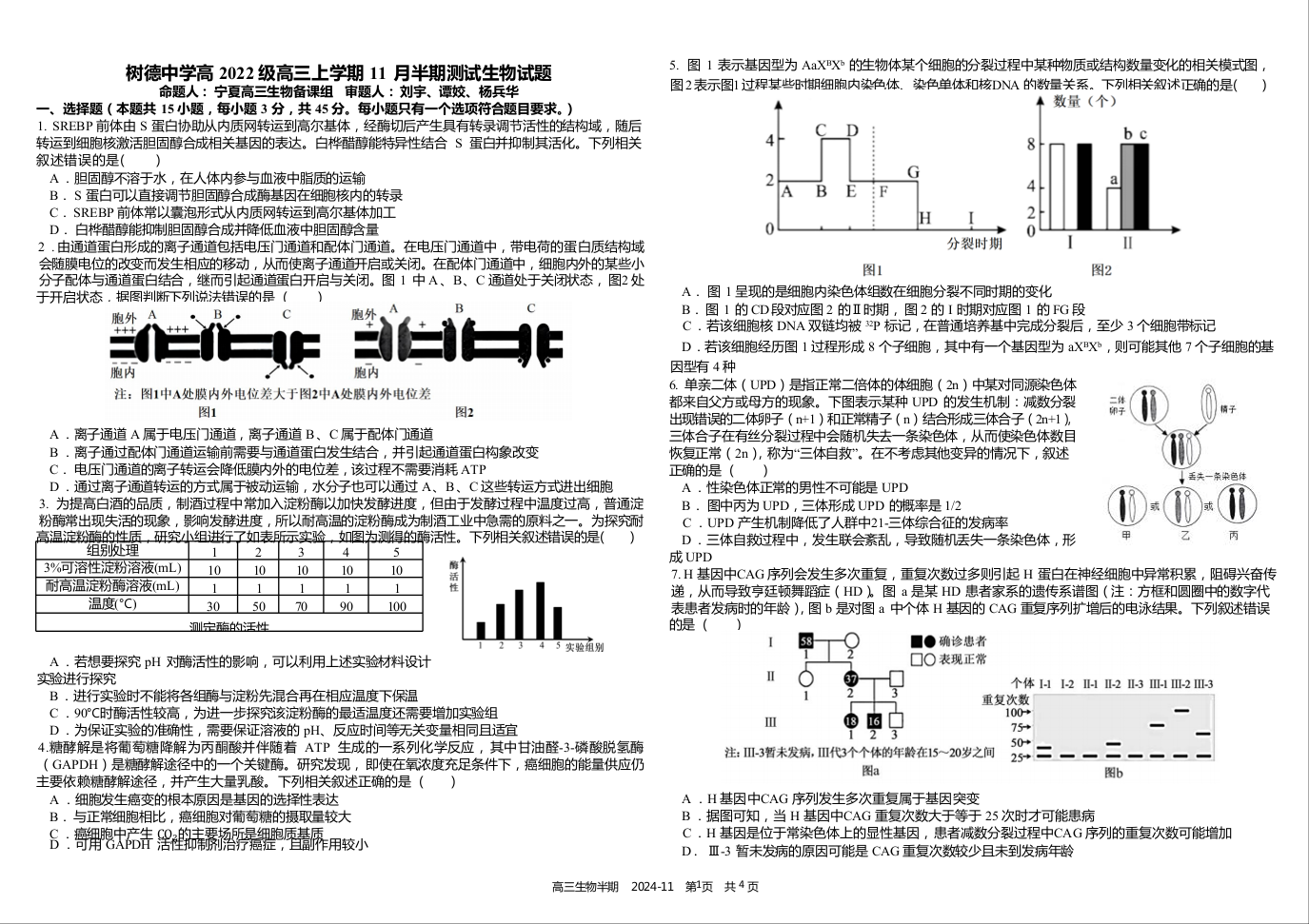 四川省成都市树德中学高2025届高三上学期期中测试 生物