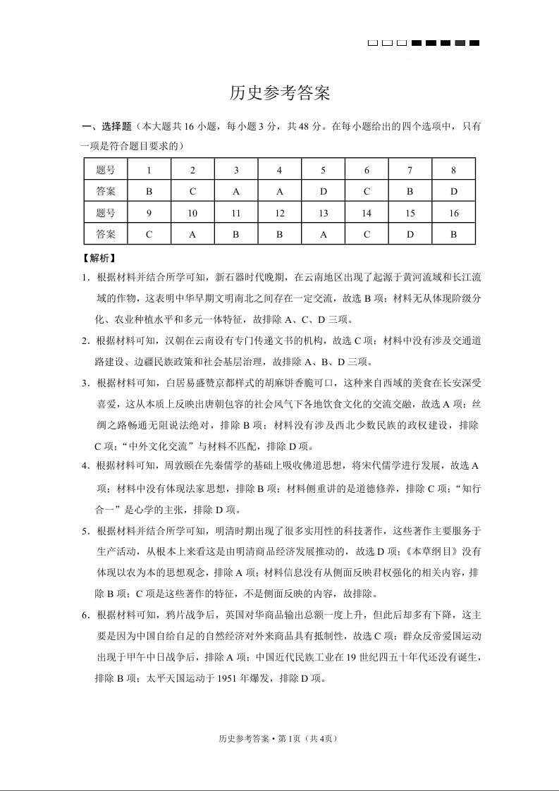云南师范大学附属中学2024-2025学年高考适应性月考卷(五)历史答案