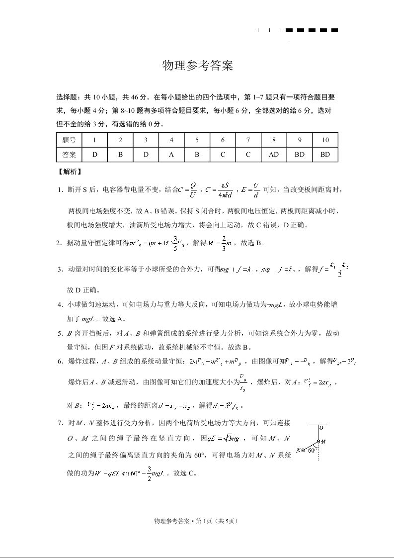 云南师范大学附属中学2024-2025学年高考适应性月考卷(五)物理答案