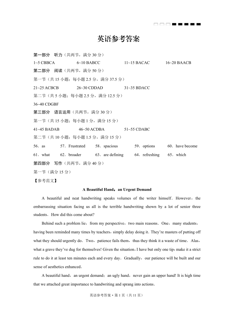 云南师范大学附属中学2024-2025学年高考适应性月考卷(五)英语答案
