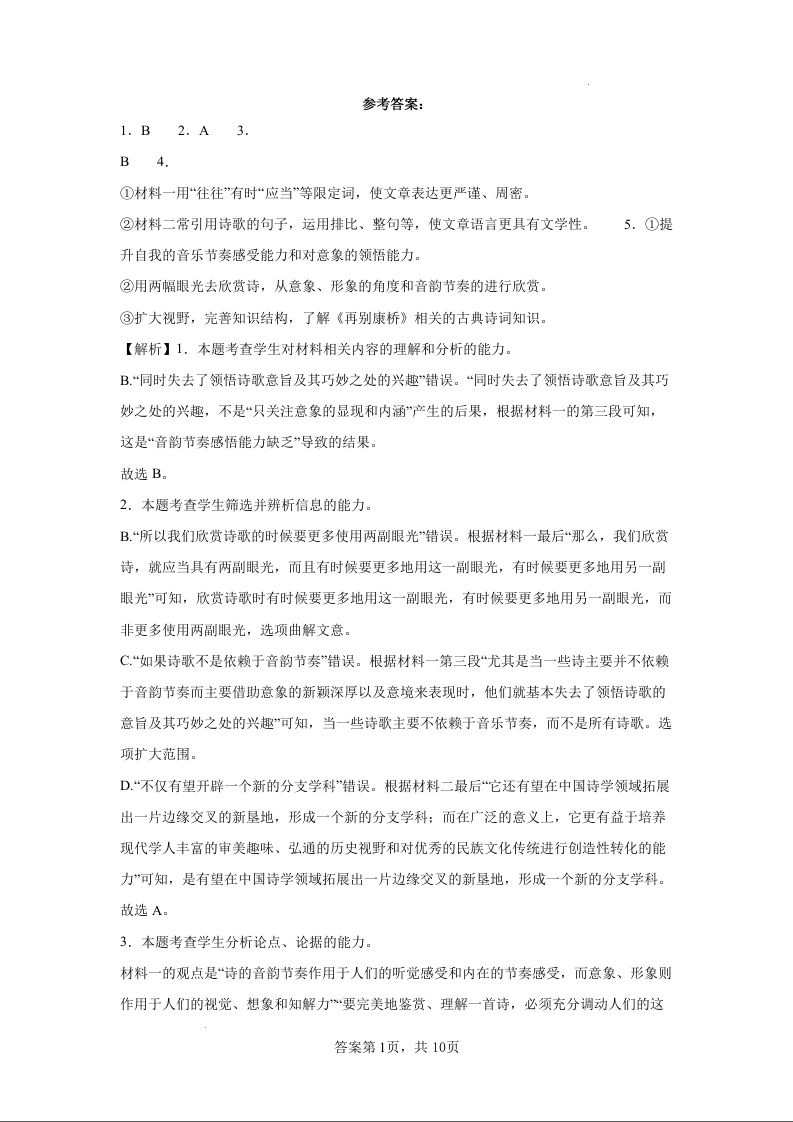 泉州市2025届高三毕业班五校联考 语文答案