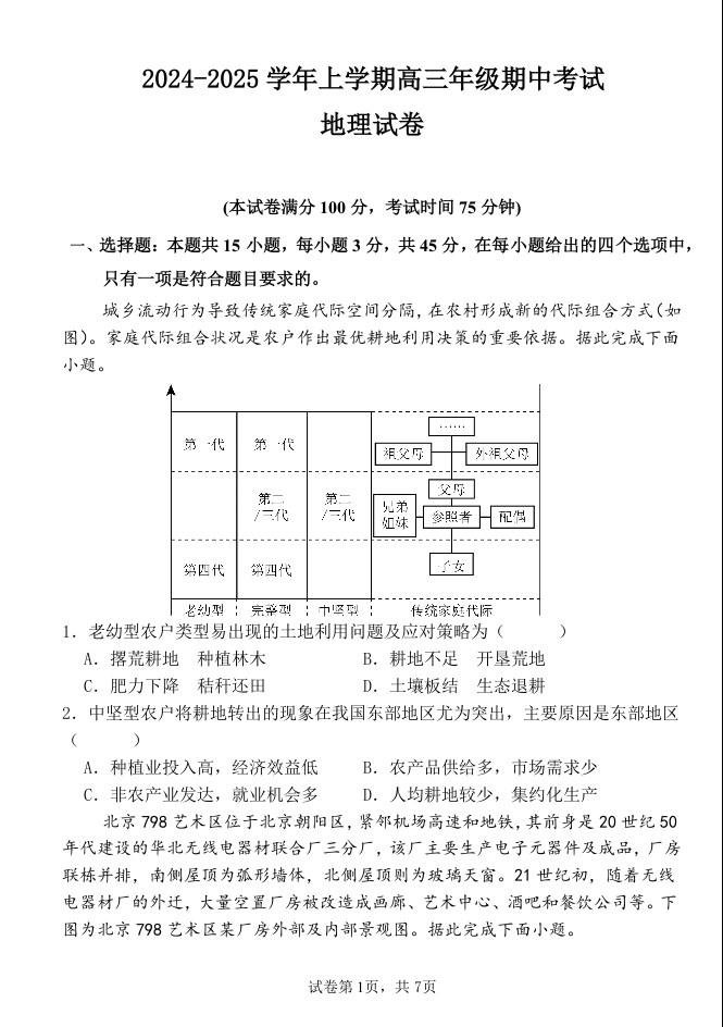 河南省郑州中学2025届高三上学期11月期中考试 地理