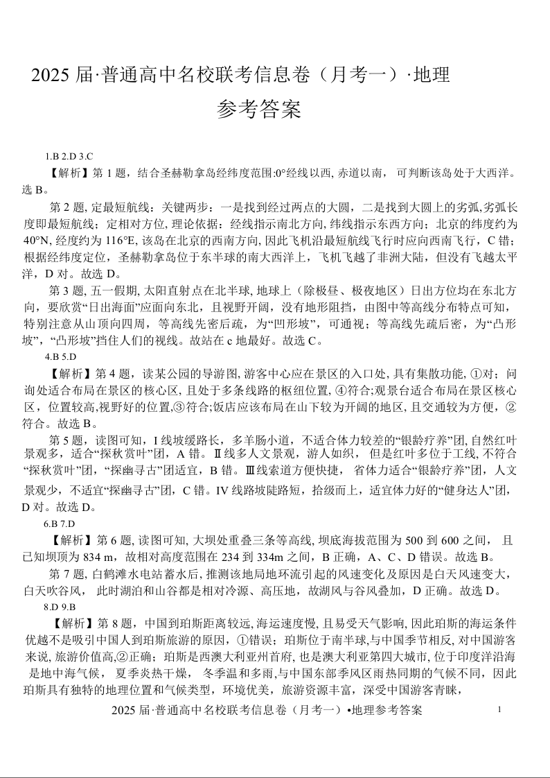 湖南省娄底市名校联考2025届高三上学期11月月考 地理答案