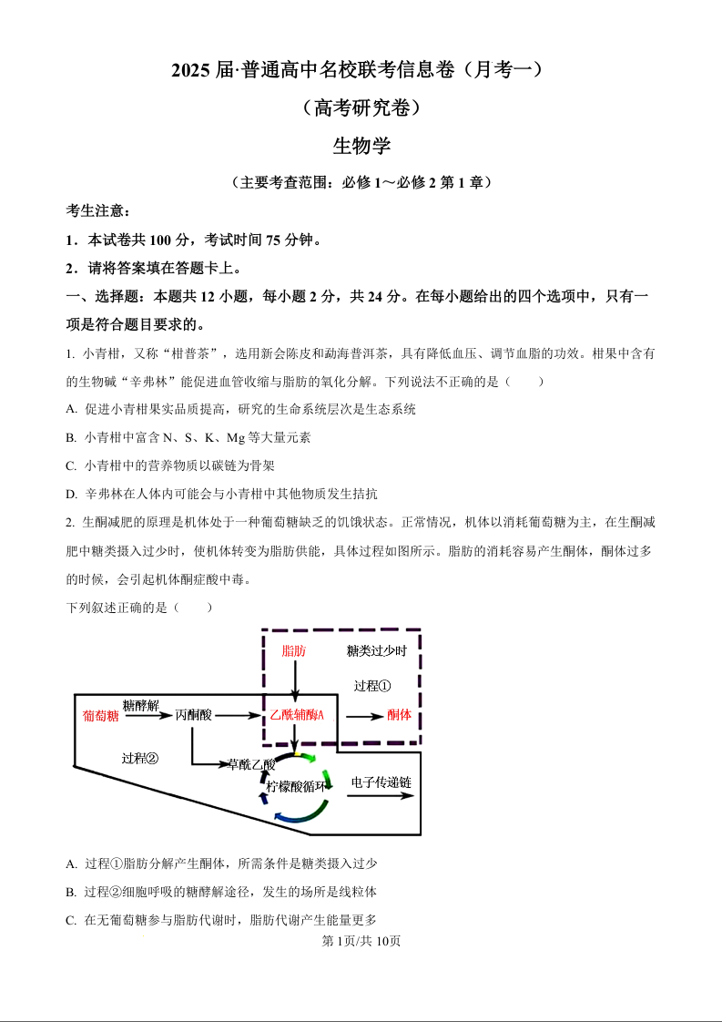 湖南省娄底市名校联考2025届高三上学期11月月考 生物