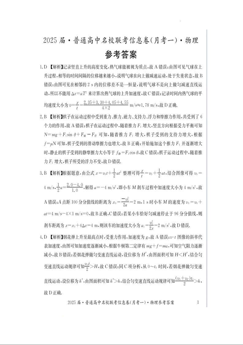 湖南省娄底市名校联考2025届高三上学期11月月考 物理答案