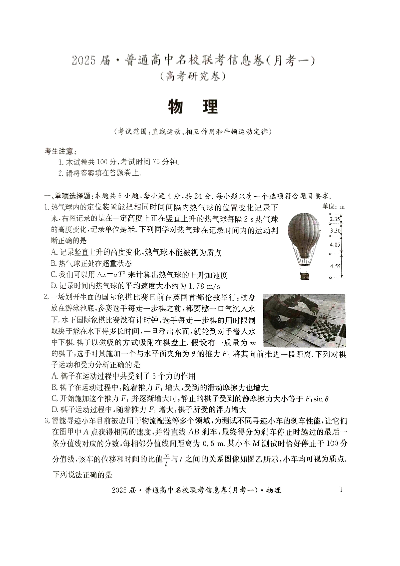 湖南省娄底市名校联考2025届高三上学期11月月考 物理