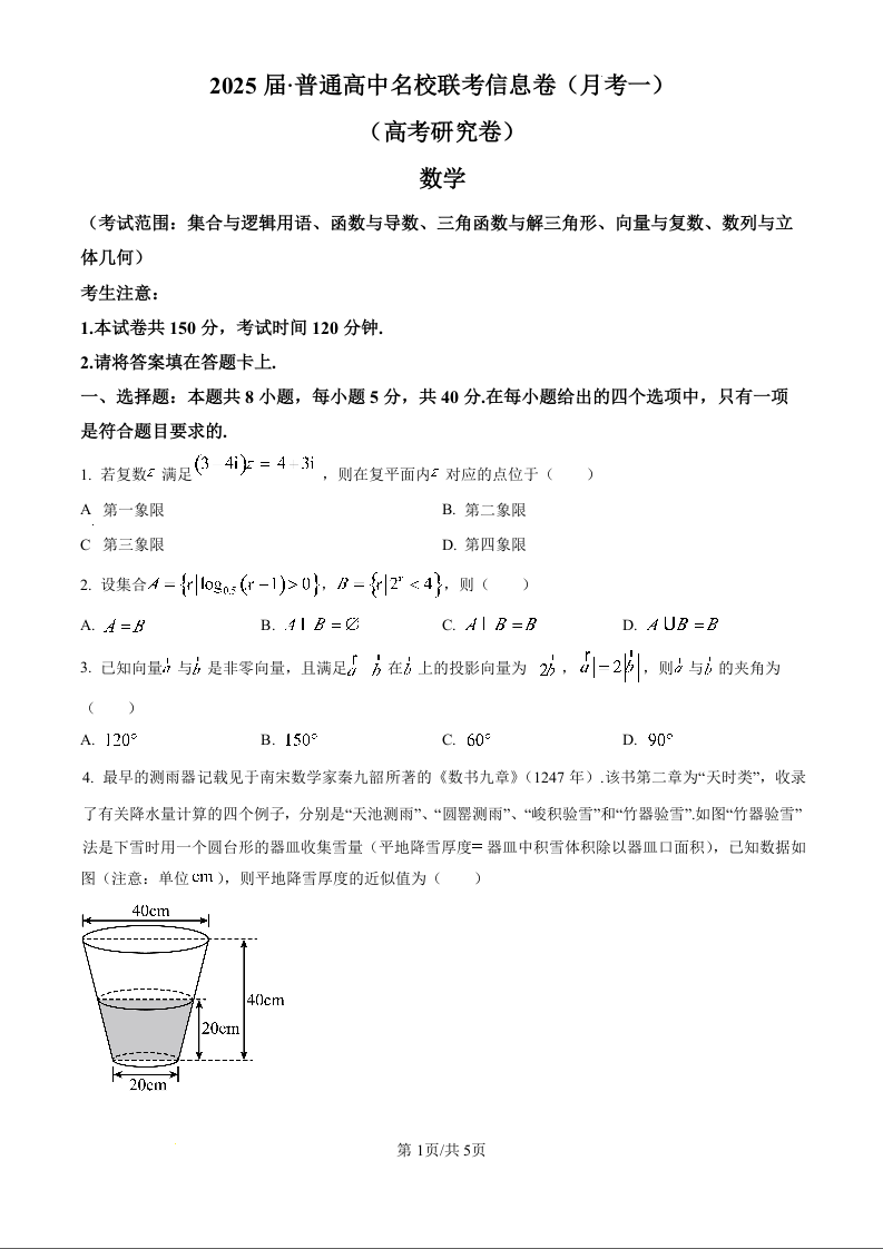 湖南省娄底市名校联考2025届高三上学期11月月考 数学