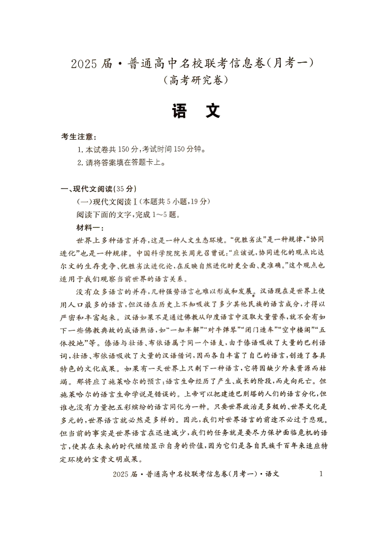 湖南省娄底市名校联考2025届高三上学期11月月考 语文