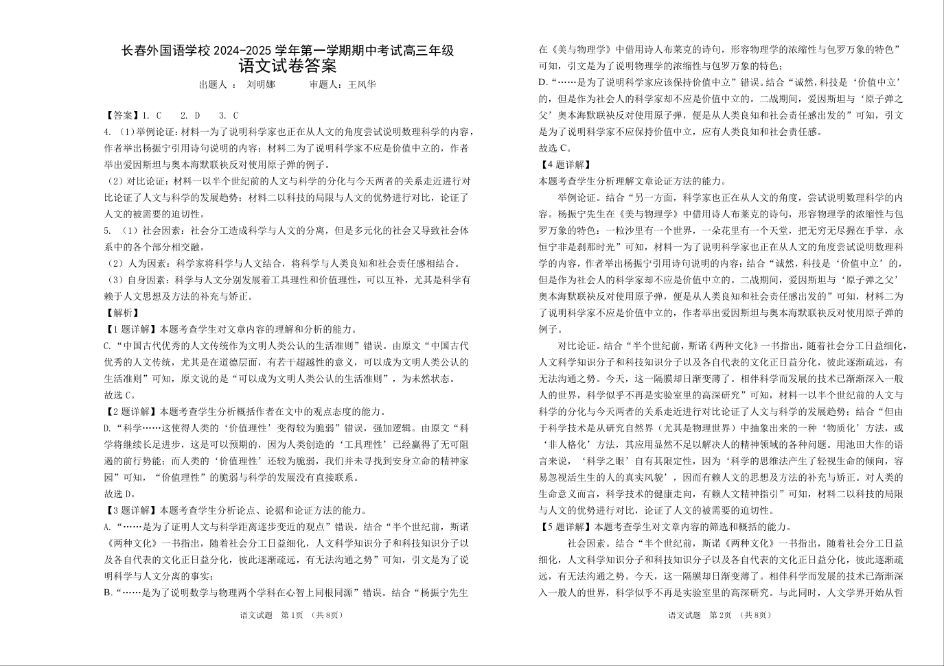 吉林省长春市朝阳区长春外国语学校2025届高三上学期期中考试 语文答案