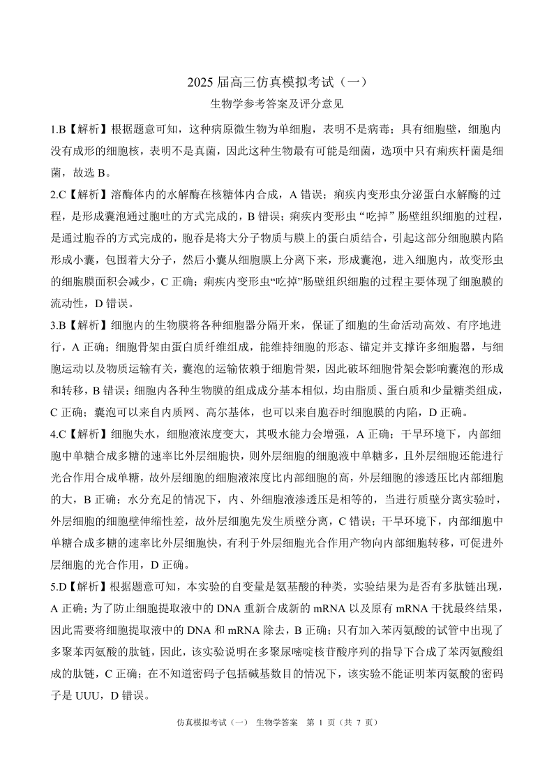 2025届陕西省教育联盟高三上学期仿真模拟(一)生物答案