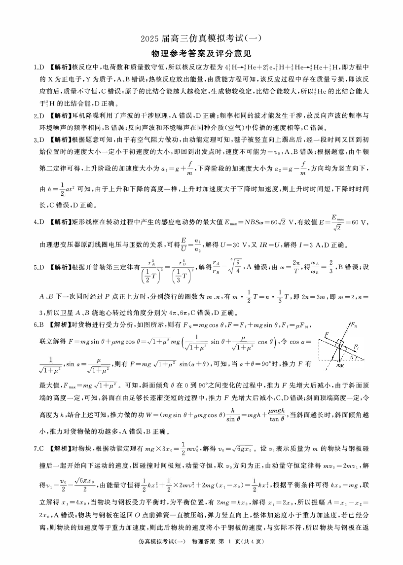 2025届陕西省教育联盟高三上学期仿真模拟(一)物理答案