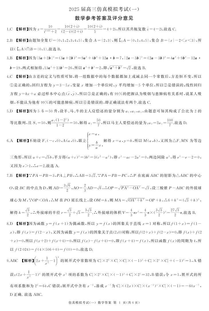 2025届陕西省教育联盟高三上学期仿真模拟(一)数学答案