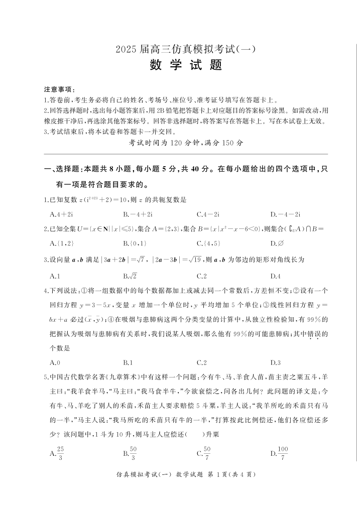 2025届陕西省教育联盟高三上学期仿真模拟(一)数学