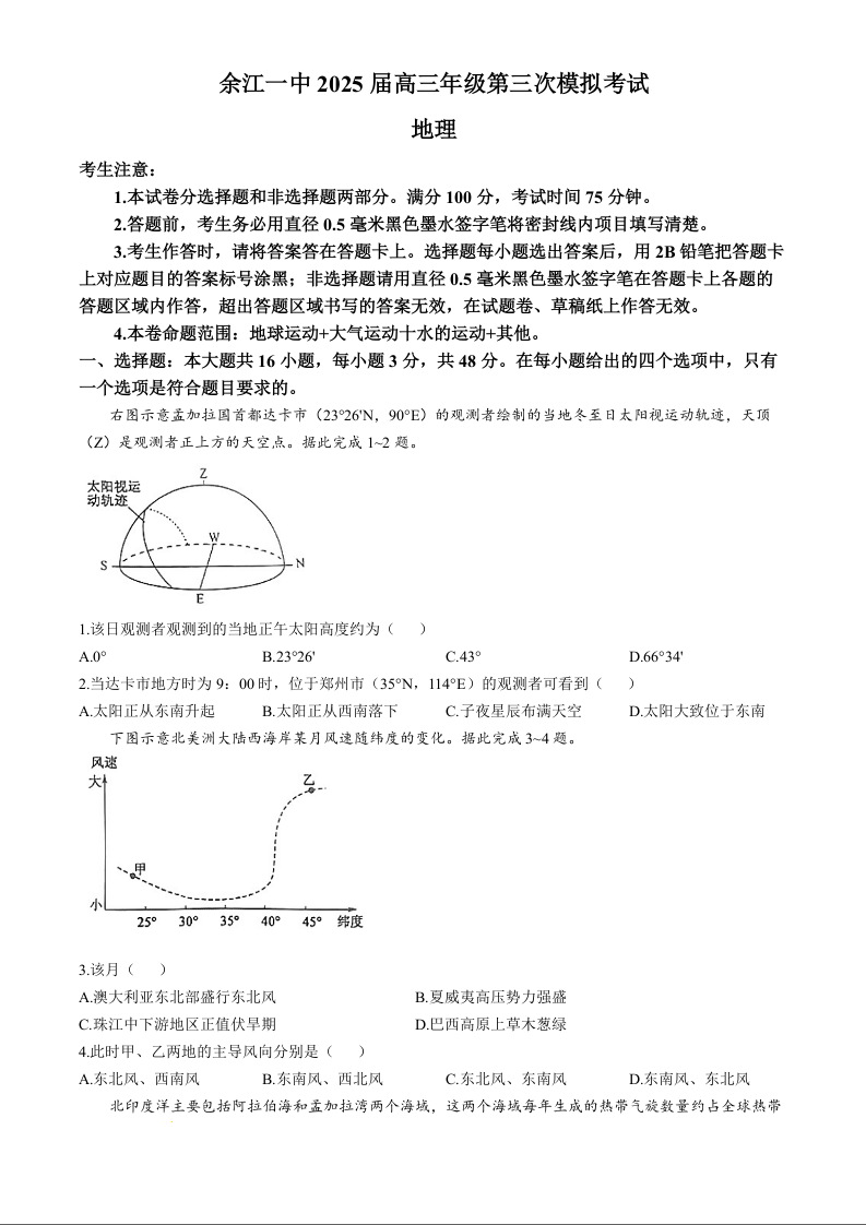 江西省鹰潭市余江区第一中学2025届高三上学期11月期中考试 地理