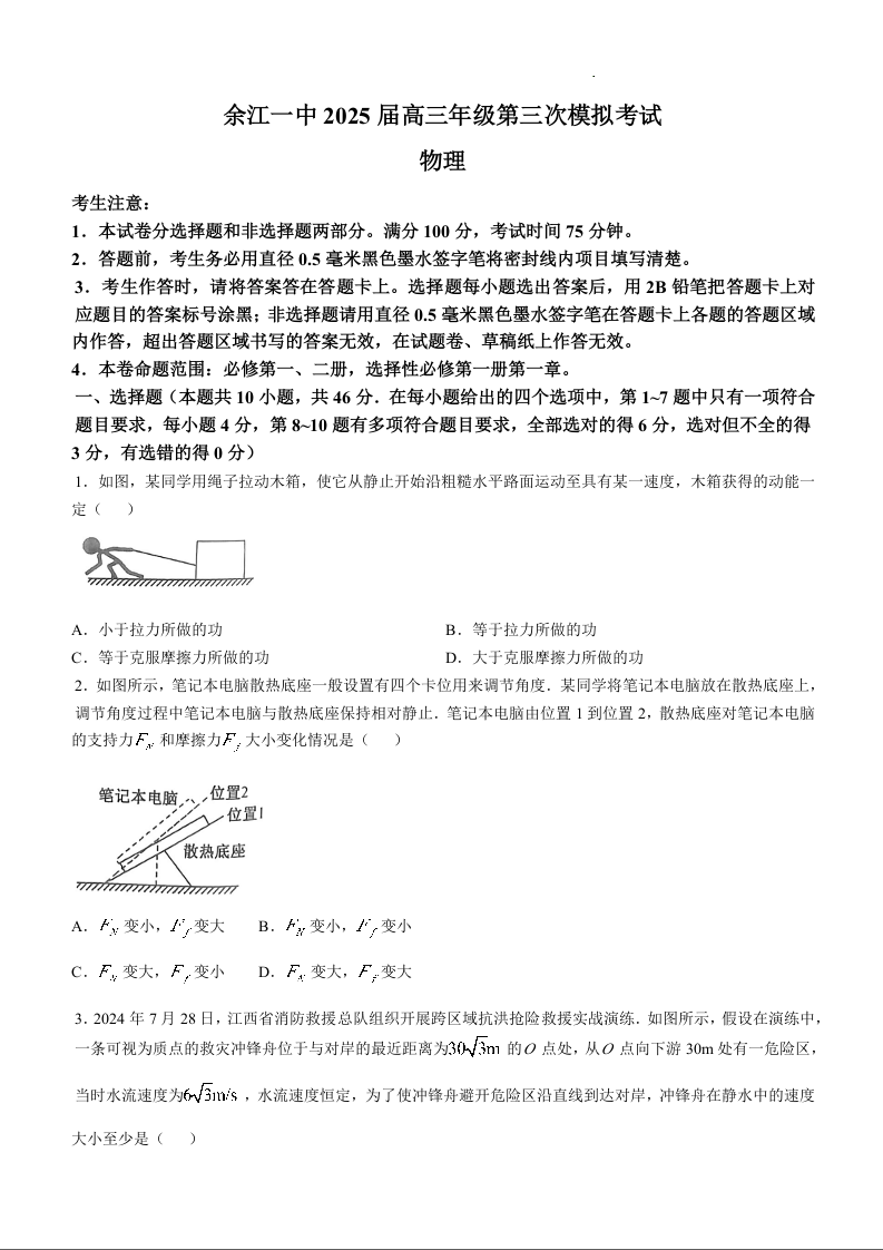 江西省鹰潭市余江区第一中学2025届高三上学期11月期中考试 物理