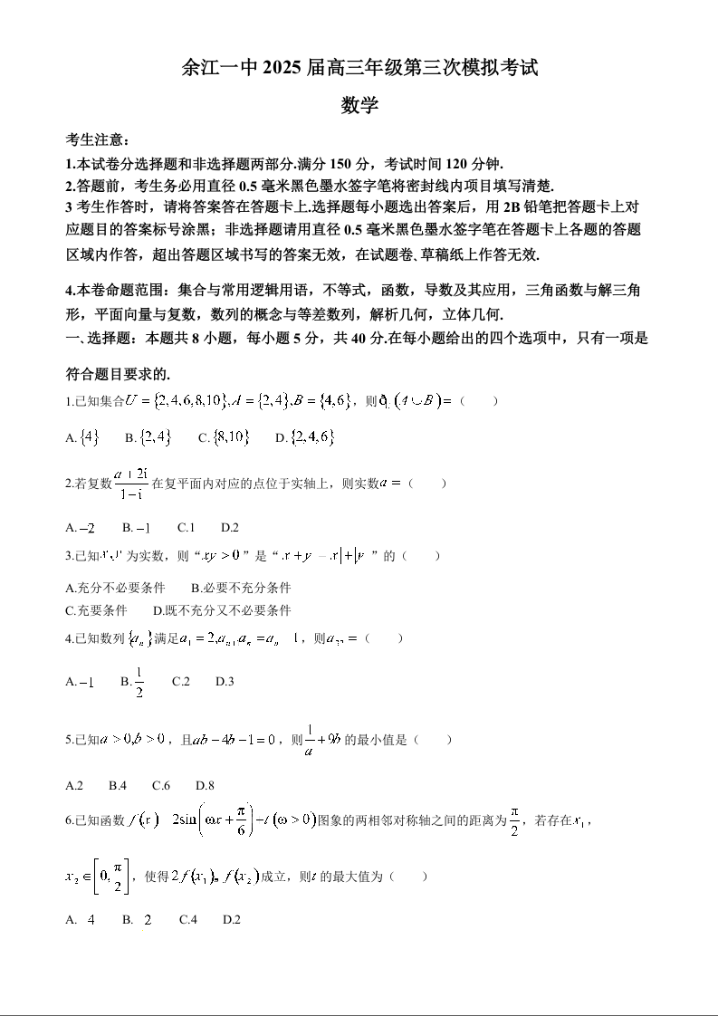 江西省鹰潭市余江区第一中学2025届高三上学期11月期中考试 数学